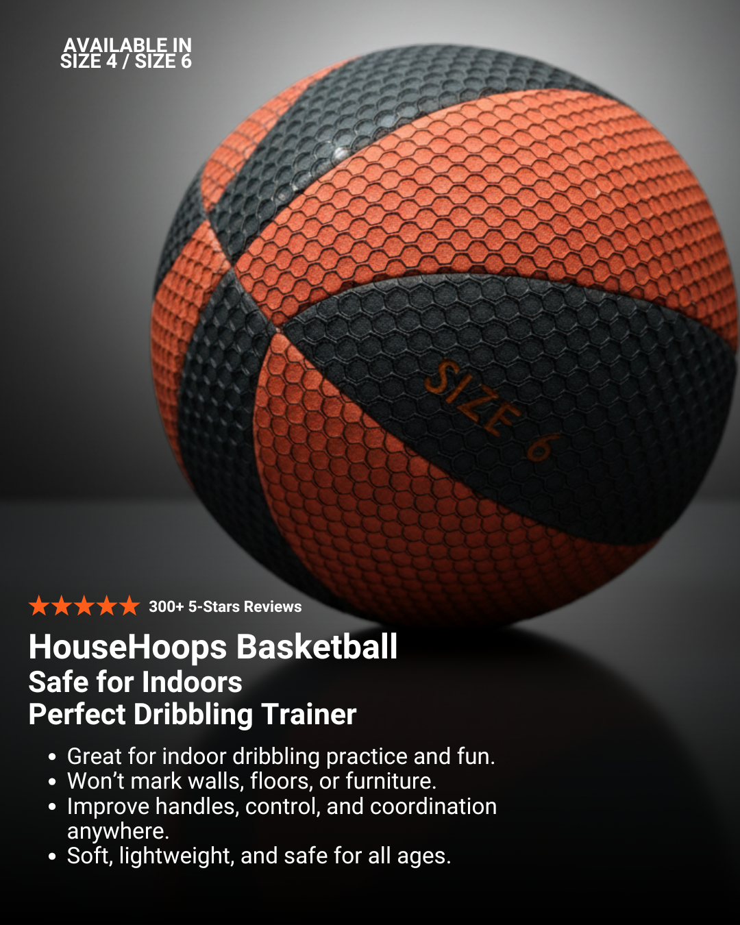 HouseHoops Basketball - Size 6 - Soft Indoor Basketball with Realistic Feel and Bounce